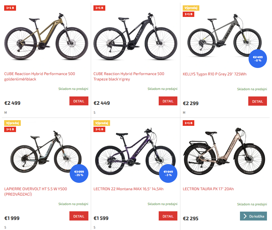Mimoriadna akcia v rámci ktorej pri kúpe jedného z vybraných e-bicyklov (označené 1+1 A) si vyberiete druhý, ktorý dostanete ZADARMO. Vybrať si môžete z e-bicyklov s označením 1+1 B.