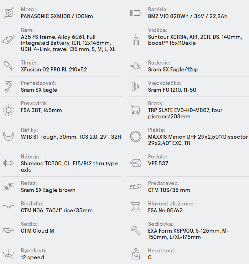 Celoodpružený trailový elektrobicykel s 29” palcovými kolesami, ktorý ťa dostane všestrannosťou! Zdvih zadnej stavby až 135mm a štvorčapový overený systém pruženia v spolupráci s vyváženou športovou geometriou zabezpečia efektívne šliapanie a stabilitu v náročnom teréne. Je vybavený extrémne výkonným motorom Panasonic GXM 100 (100Nm) a integrovanou batériou BMZ V10 s kapacitou až 820Wh. Extra rámové úchyty na príslušenstvo ako sú tašky, box s náradím alebo druhá fľaša a integrovaný systém kabeláže dopĺňajú nabitú výbavu.