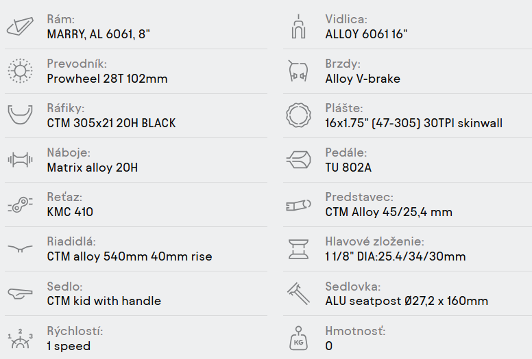 | Priemer kolesa: | 16 |